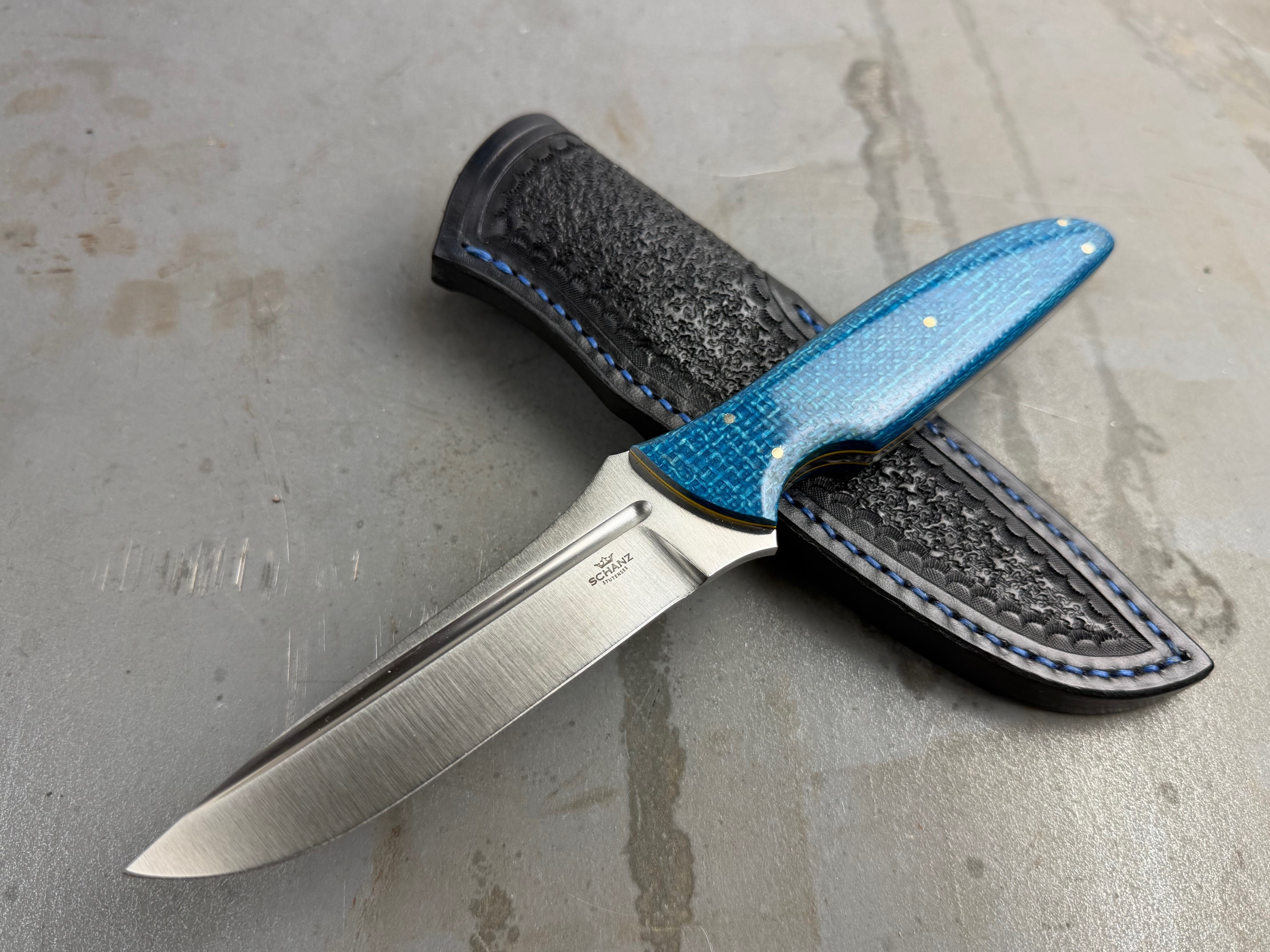 Stahl : N690 HRC : 61 Klingenlänge : 105mm Klingenstärke : 4mm Gesamtlänge : 220mm Griffschalen aus Jutemicarta Lederscheide
