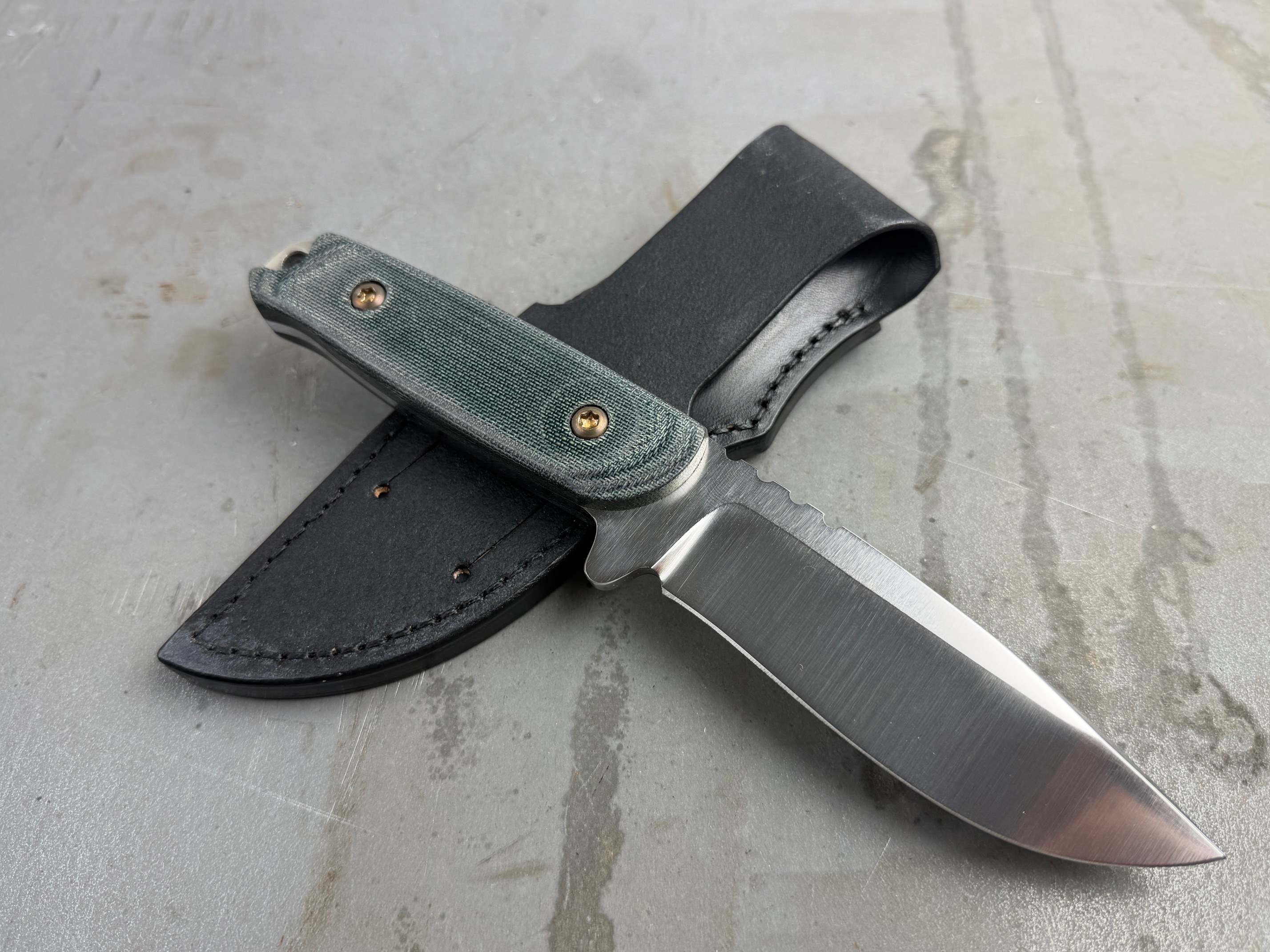 Ausgeliefert wird das Messer mit einer perfekt angepassten Lederscheide welche ein tragen am Gürtel in 2 Positionen ermöglicht.