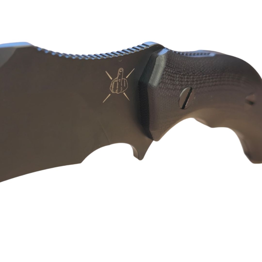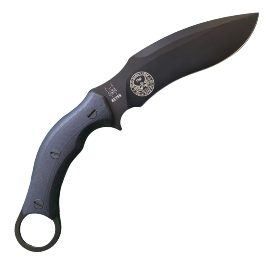 Entworfen in Zusammenarbeit mit Krav Maga-Meister Martín Luna für die Neton-Gruppe der spanischen Legion. Die Fulltang-Klinge ist aus Nitro-V-Stahl mit kryogener Wärmebehandlung gefertigt. Wie für den Griff, ist es mit schwarzen G10 gefräst Griffe, die einen weichen und festen Griff bietet angepasst. Die Scheide ist aus Kydex gefertigt und von RK Sheaths entworfen. Das Messer wird von einem kleinen Werkzeug mit Schraubendreher und Hebel begleitet, das in der gleichen Scheide untergebracht ist.