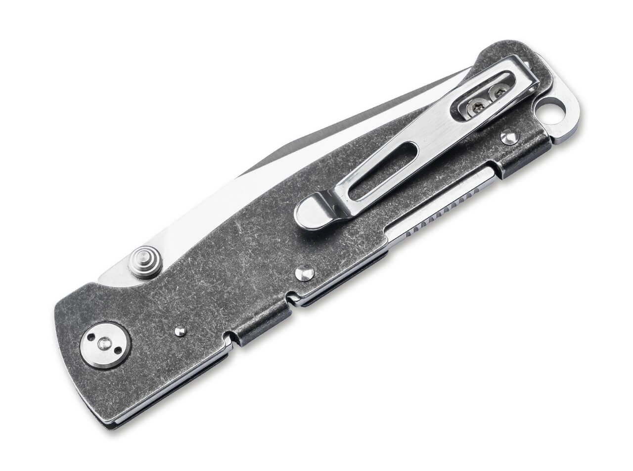 Als zuverlässiges EDC-Taschenmesser mit einem Griffkörper aus Edelstahl, gehalten in einem feinherben Black-Stonewash-Finish, vereint das Vollmetall-Messer Anpacker-Mentalität mit schlichter Eleganz und betonter Leichtfüßigkeit. Die minimalistische Konstruktion ist absolut robust und macht das handliche Faltmesser zum täglichen Begleiter in allen Lebenslagen.