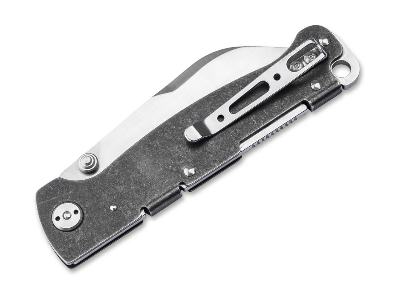 Als zuverlässiges EDC-Taschenmesser mit einem Griffkörper aus Edelstahl, gehalten in einem feinherben Black-Stonewash-Finish, vereint das Vollmetall-Messer Anpacker-Mentalität mit schlichter Eleganz und betonter Leichtfüßigkeit. Die minimalistische Konstruktion ist absolut robust und macht das handliche Klappmesser zum täglichen Begleiter in allen Lebenslagen.