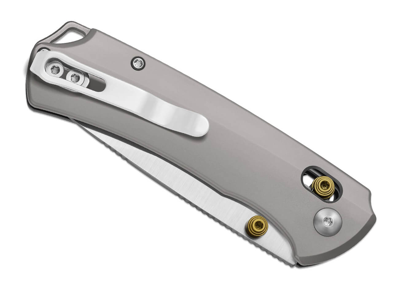 Der Griff aus massivem Titan verbindet Stabilität mit einer eleganten, technischen Optik. Die ergonomische Form sorgt für eine angenehme Handlage und unterstützt eine sichere Nutzung im Alltag.